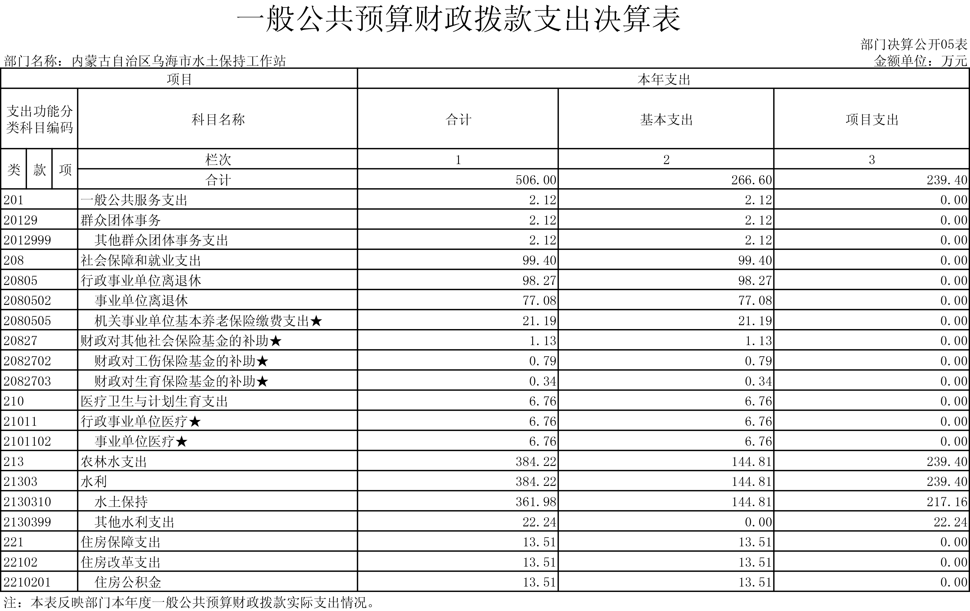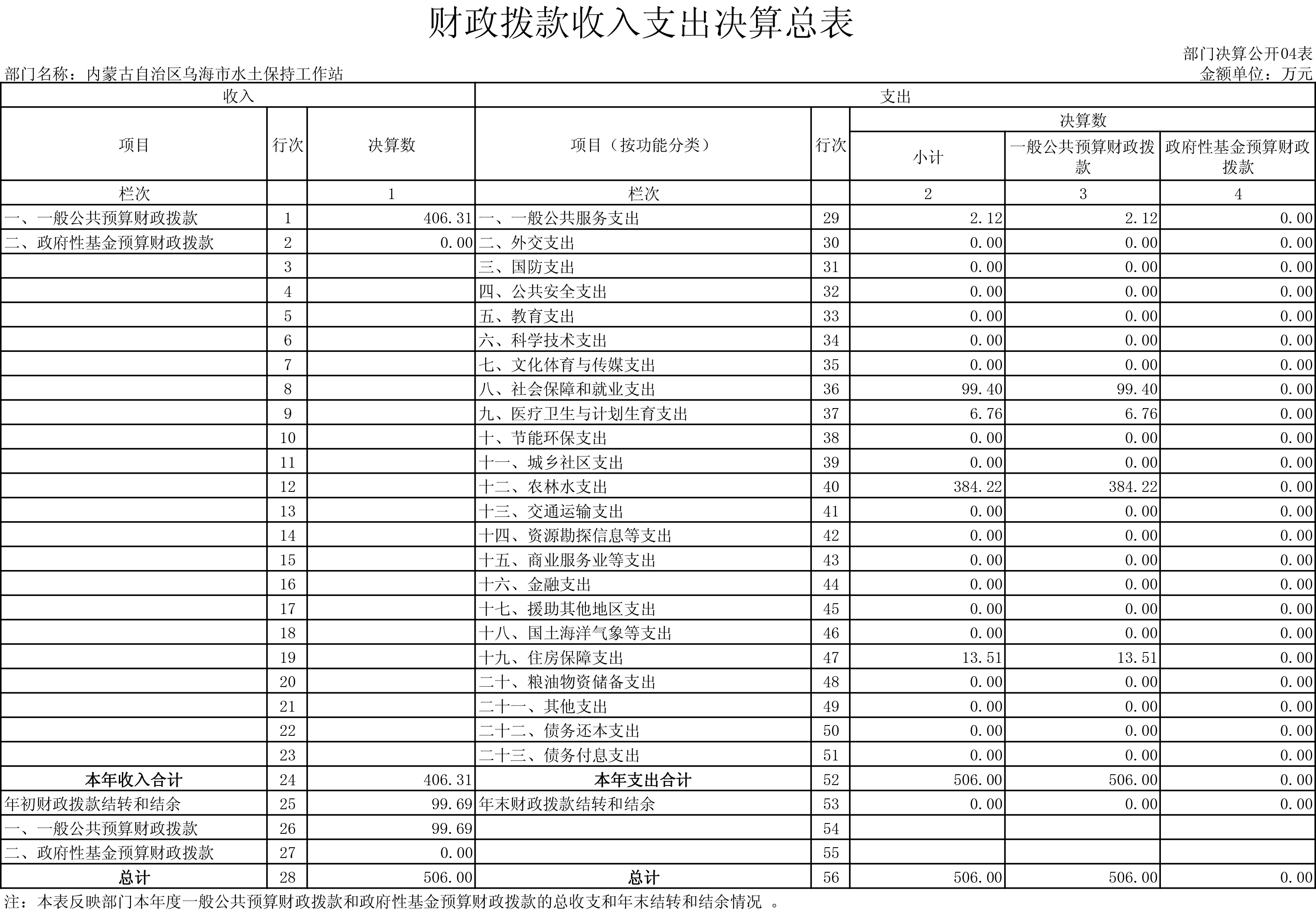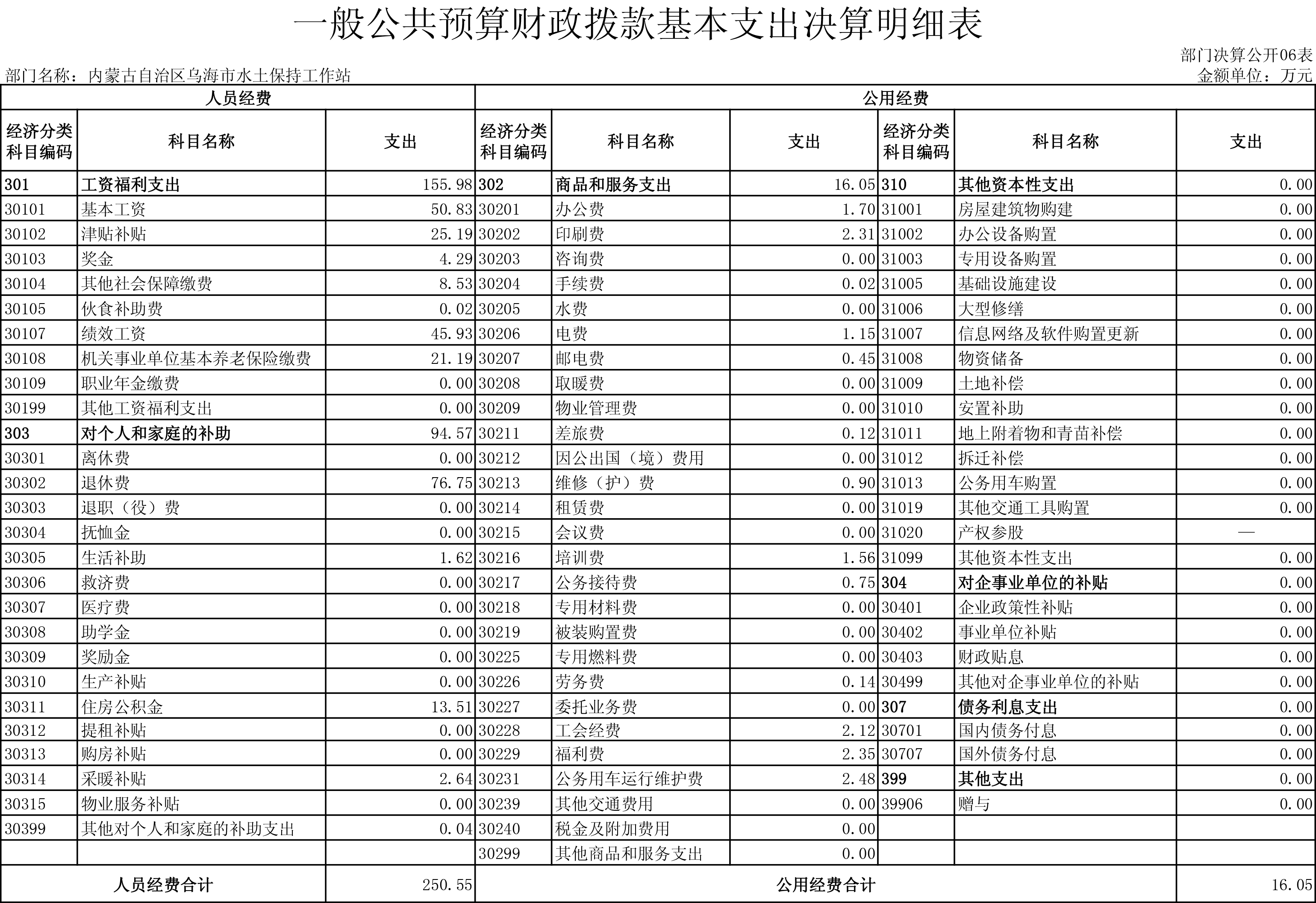 内蒙古自治区乌海市水土保持工作站2017年度决算公开报告