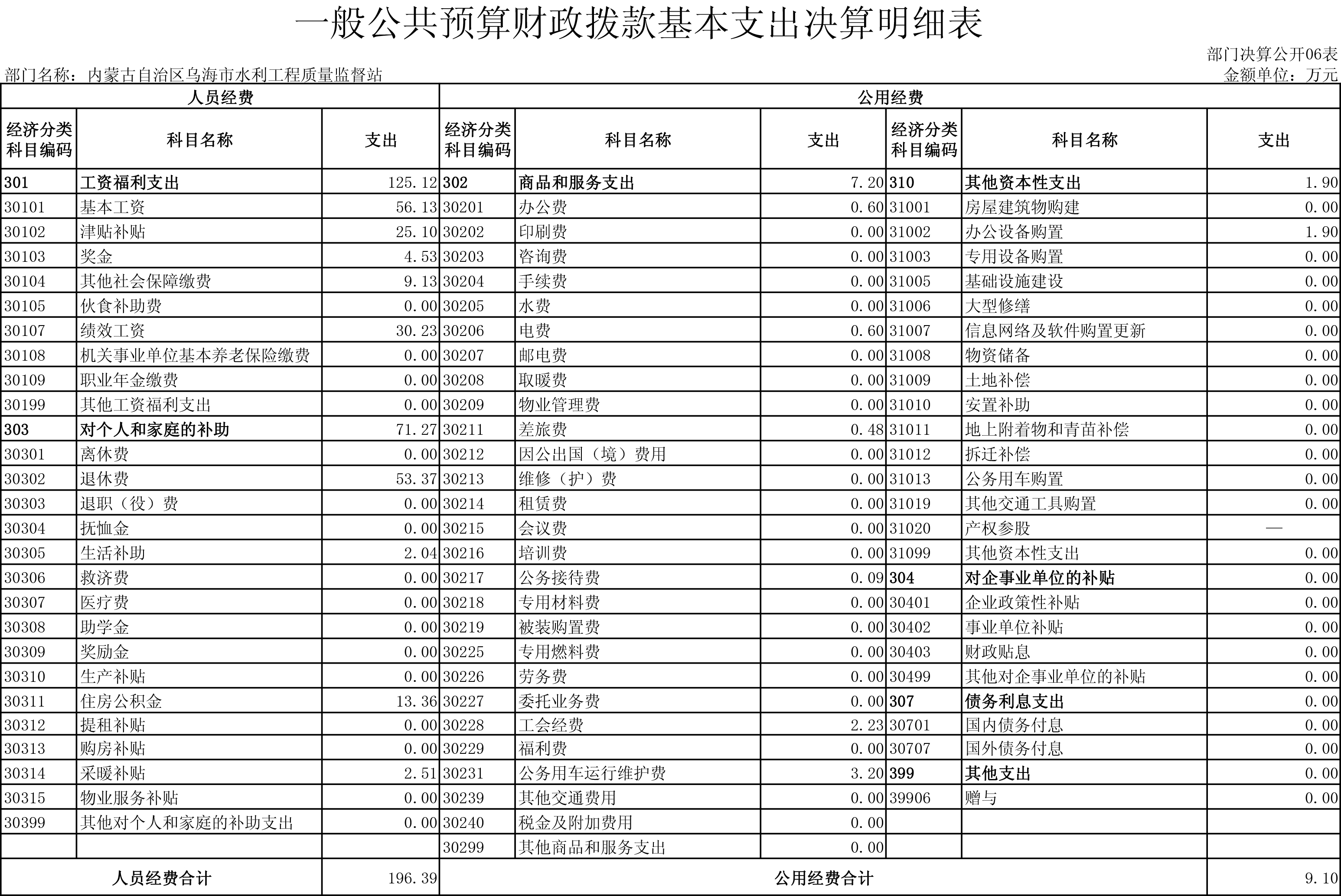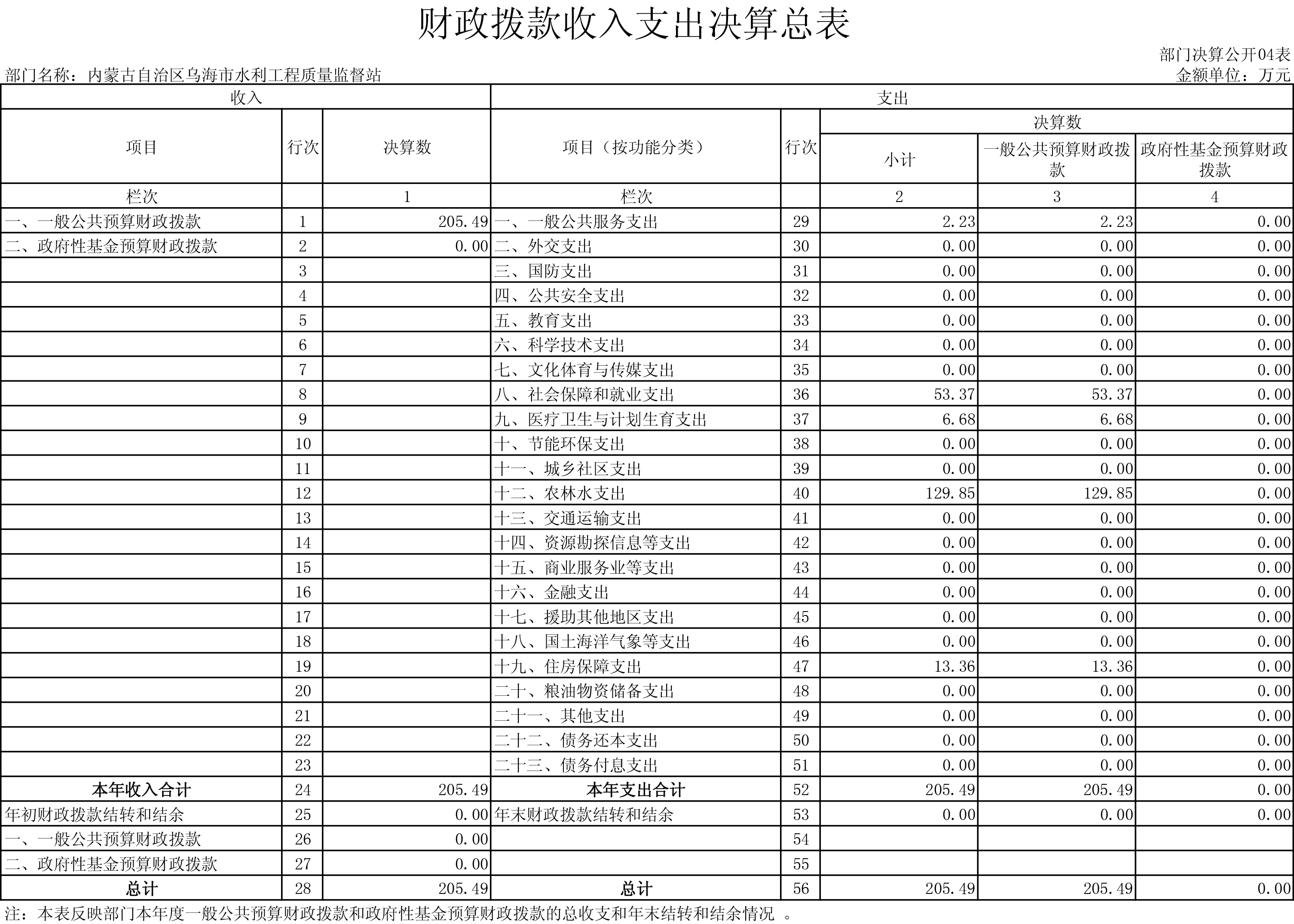 内蒙古自治区乌海市水利工程质量监督站2017年度决算公开报告